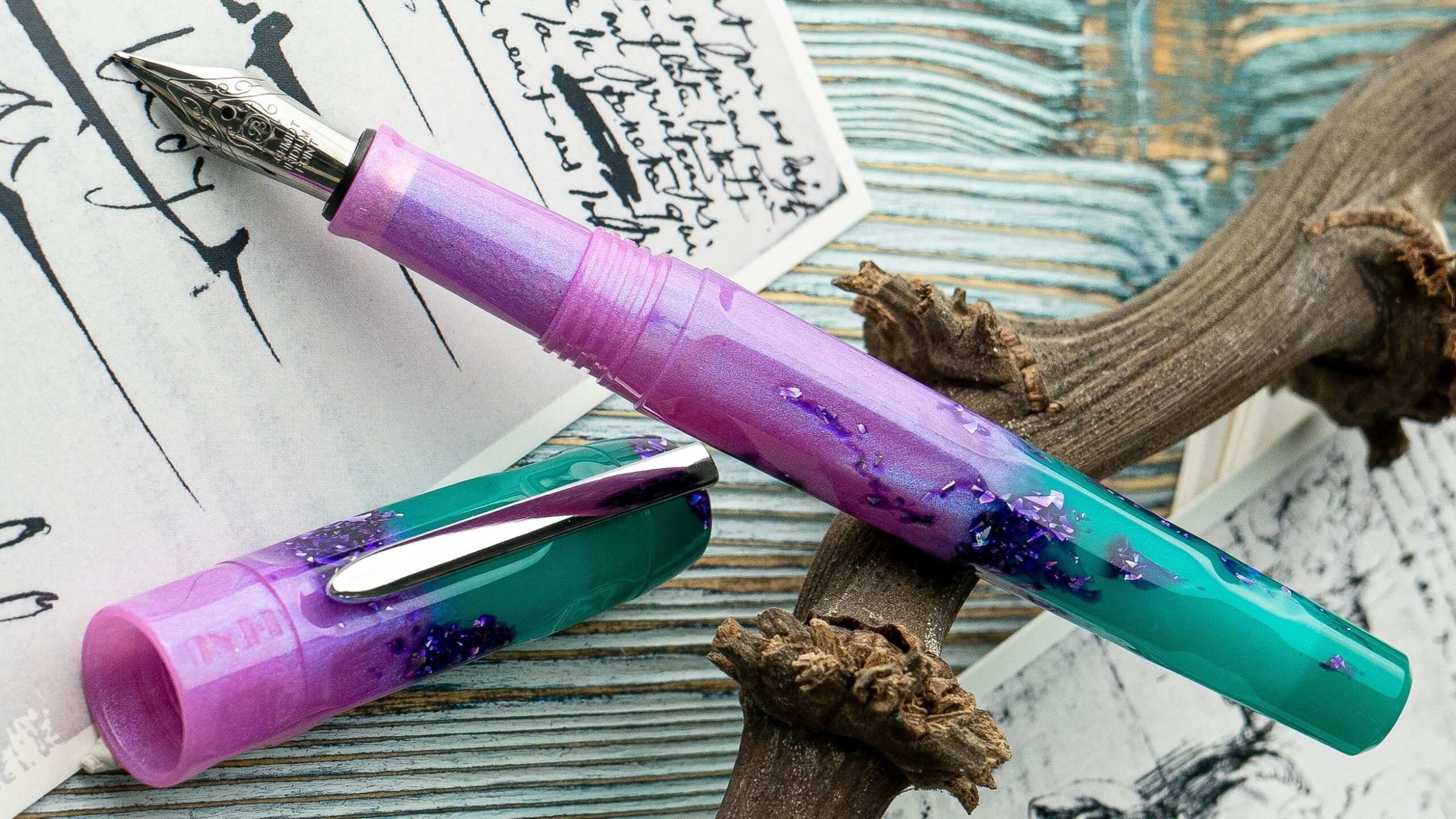 Often known as mandrake, the Mandragora Officinarum plant is native to both the Mediterranean and the Himalayas. With a long history of use in religious and occult practices, this plant is particularly noted for its potent roots, which somewhat resemble the human body. With purple flowers and green leaves, often arranged in a basal rosette shape, we have created the Mandrake pen using these colors as our inspiration.