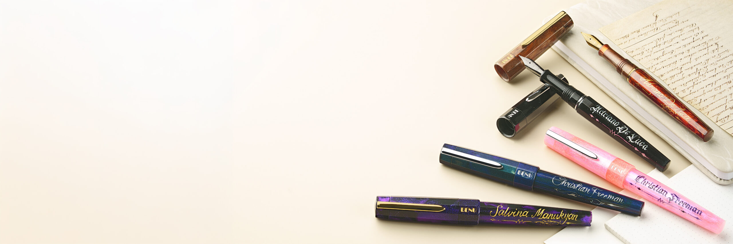 The Autograph series celebrates self-expression, offering the chance to personalize your pen with a hand-lettered inscription. We’re thrilled to relaunch it with new options — choose from three stylish fonts and silver or gold lettering for your custom text.