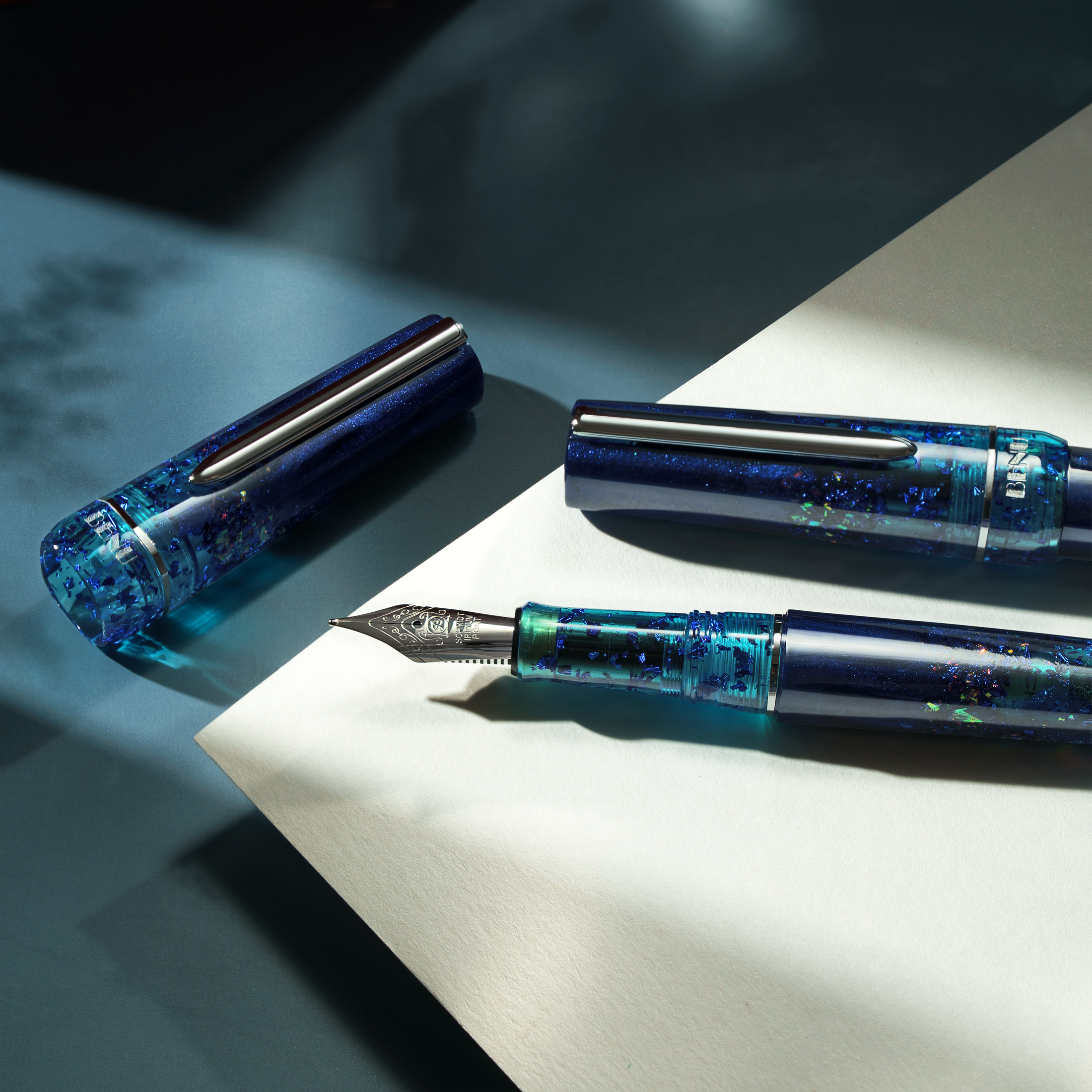 BENU presents the newest Haute Collection — a line of elegant, fashion-inspired pens that blend classic charm with bold, modern flair. The designs include both subtle and vibrant styles, showcasing BENU’s signature glitter and color artistry. Each pen features a faceted body with alternating wide and slender facets, complemented by either gold-plated or chrome-plated trims for a sleek, timeless look.