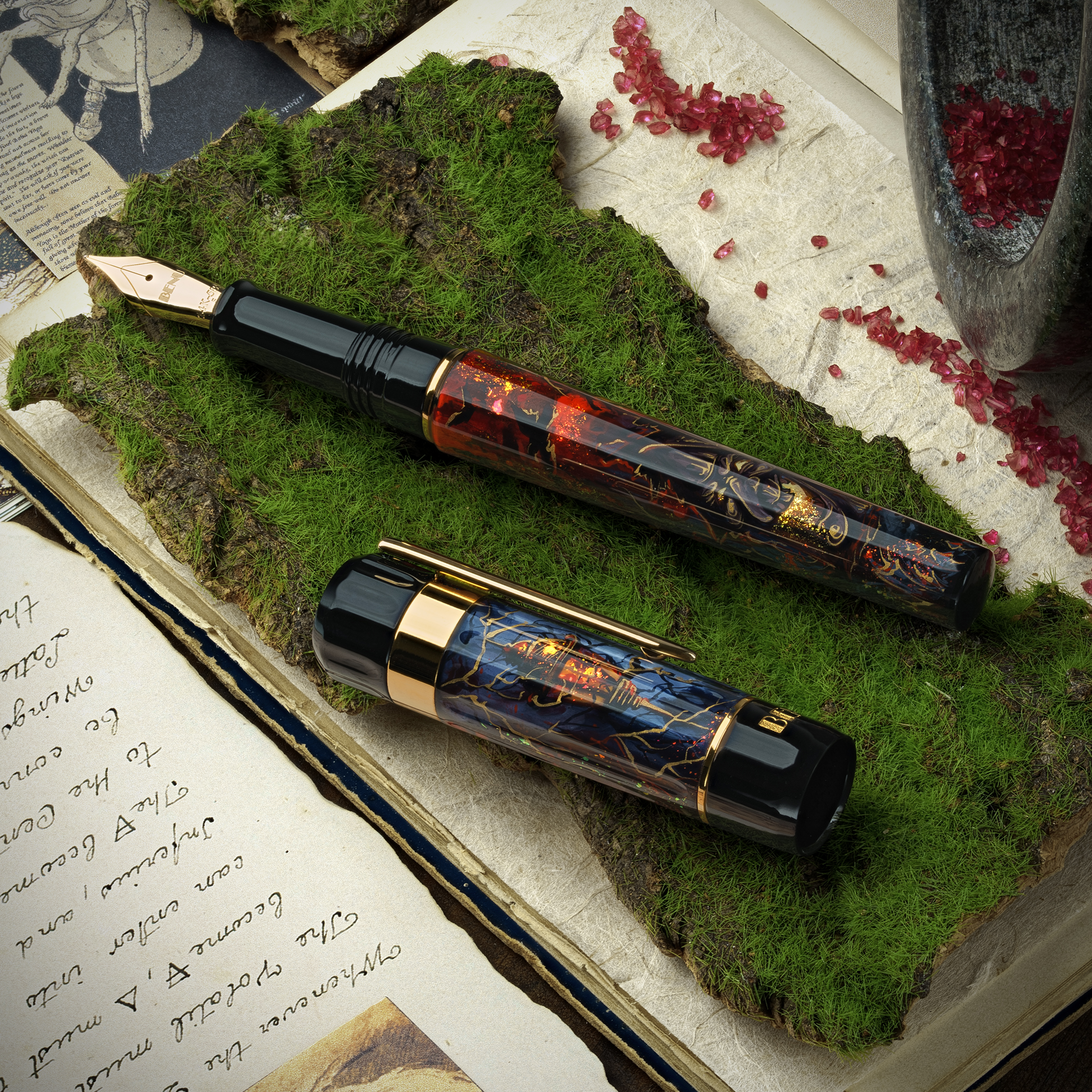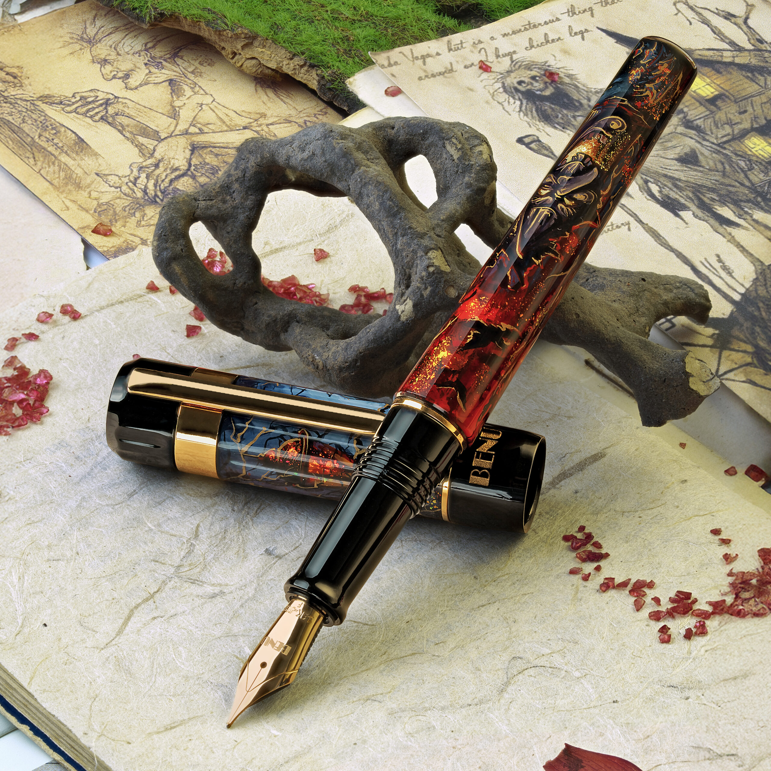 Available with either a gold-plated stainless steel nib or a 14k gold nib, the Baba Yaga pen is a spellbound relic — crafted for those who find beauty where others fear to look.