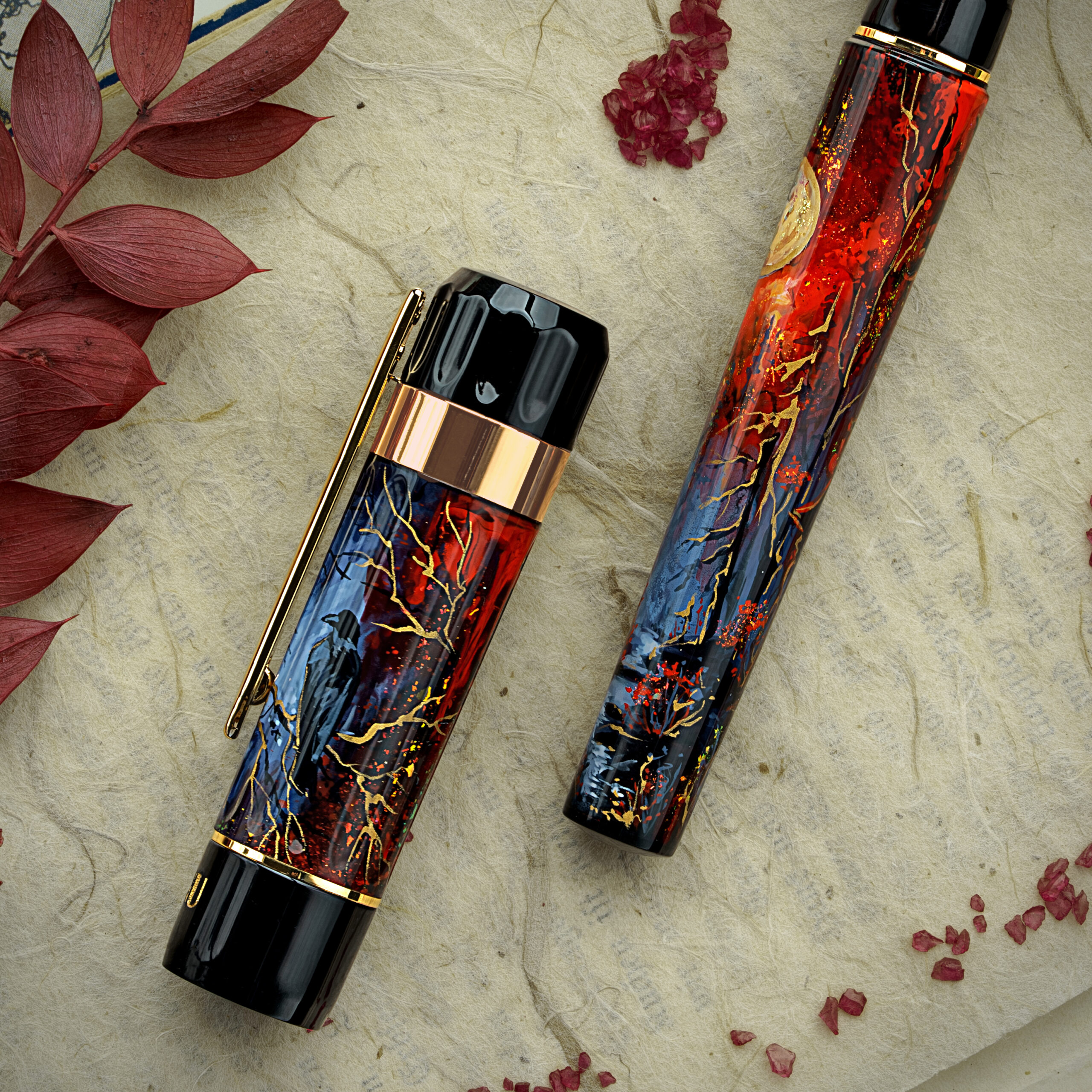 Please bear in mind that the photo may slightly differ from the actual item in terms of color due to the lighting during photo shooting or the monitor’s display. Moreover, each of these unique pens are hand painted. This means each pen slightly differs in art work, and as such is one-of-a-kind. Although all defining elements will be present, we unfortunately can’t guarantee their exact position on the barrel. Relying on a handmade process for these gorgeous works of art, rather than machinery production, is what makes each piece truly unique.