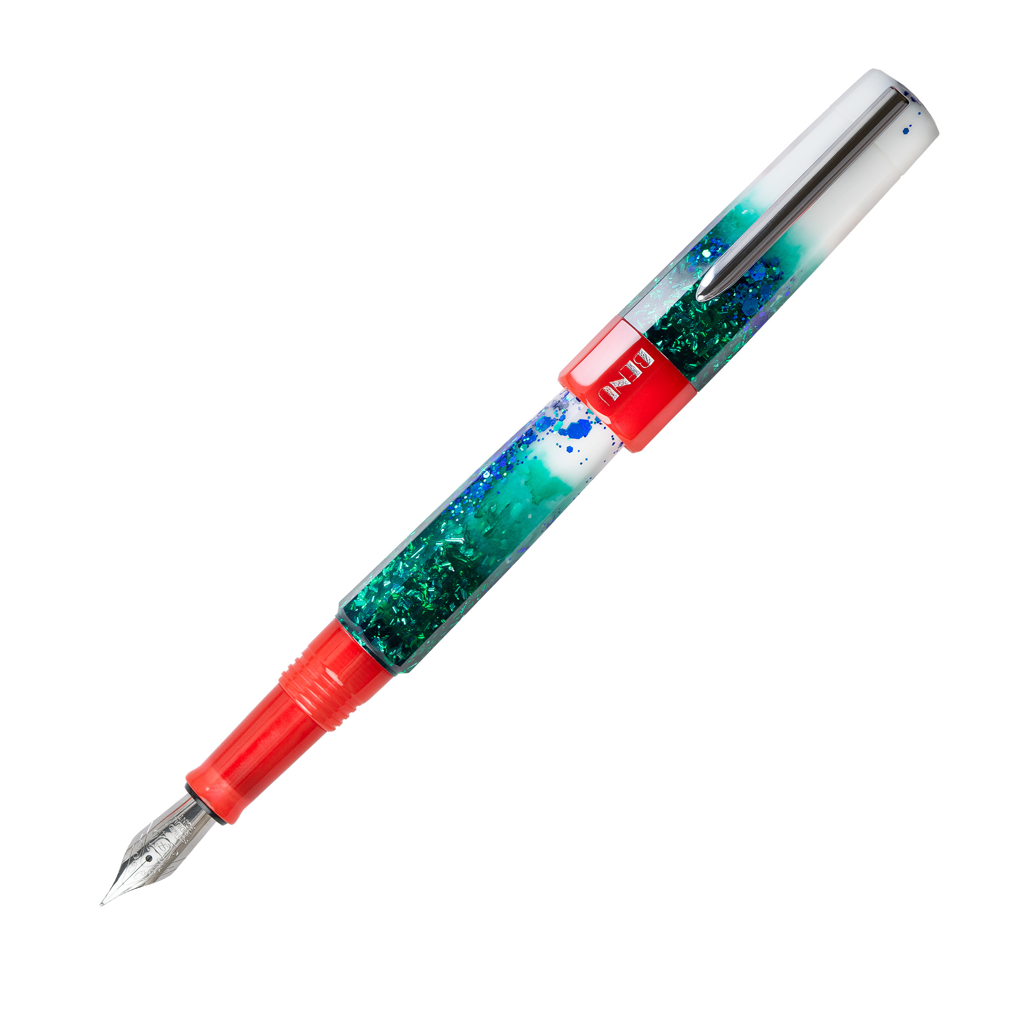 To celebrate the most wonderful time of the year, BENU introduces the Christmas Twinkle fountain pen. Crafted in traditional Christmas colors, this pen is a limited edition with only 500 pieces available worldwide. The Christmas Twinkle is distinguished by a captivating glow-in-the-dark effect activated by blue light. Additionally, each pen features a unique serial number engraved on the ring of the cap.