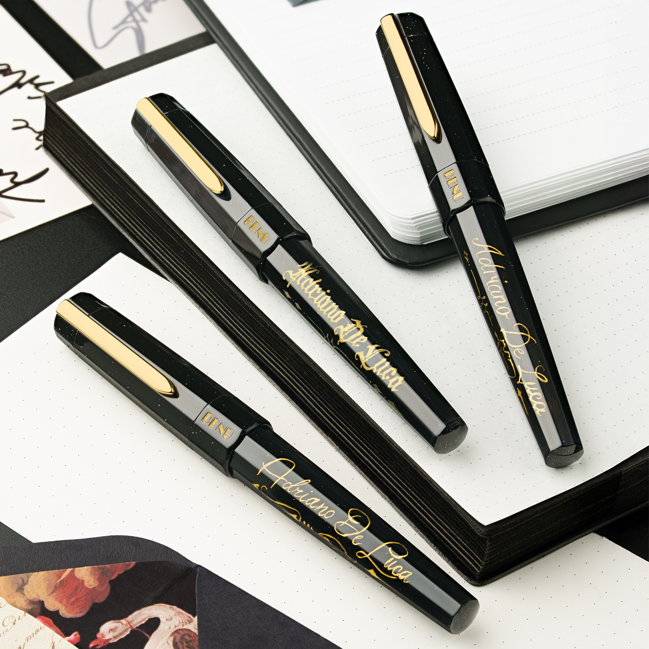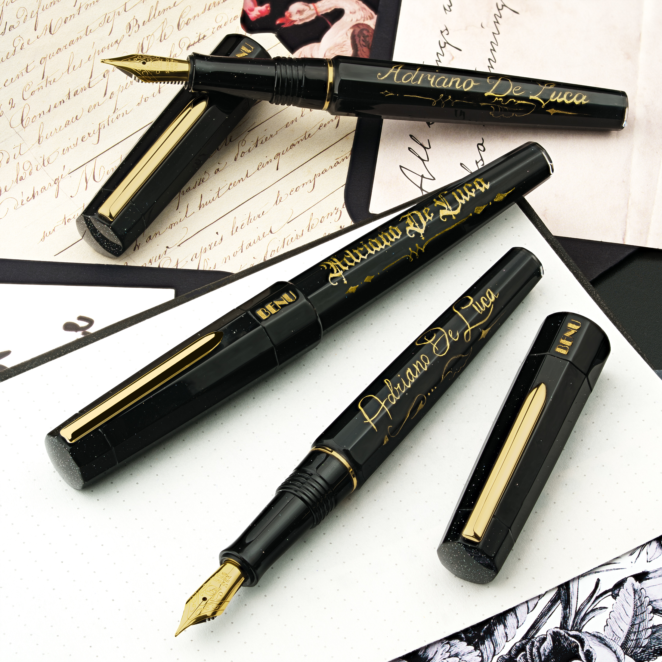 We’re excited to relaunch the Euphoria Autograph series with new personalization options. You can now choose from three elegant font styles and select either silver or gold lettering for your inscription. To add your custom text, simply enter it in the box next to the nib size selection before adding the pen to your cart.