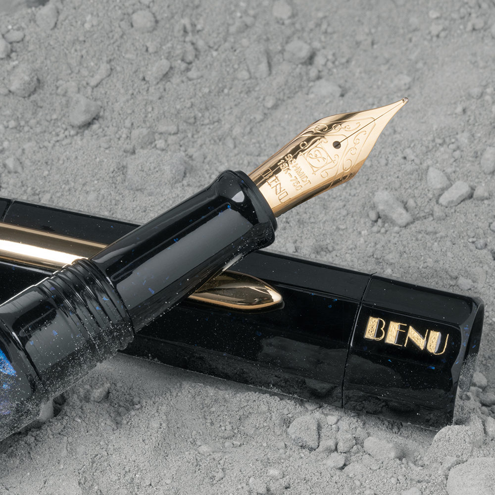 The Cosmic Surfer is an exquisite hand-painted pen produced as a unique, one-of-a-kind piece. The detailed artwork, made using micro-painting techniques, depicts an interstellar scene with an astronaut surfing among the stars, as well as a captivating view of the Earth from outer space. The pen features an 18ct gold nib. Check out more photos and a video of the pen, available exclusively from the BENU online store, to see its beauty in full.