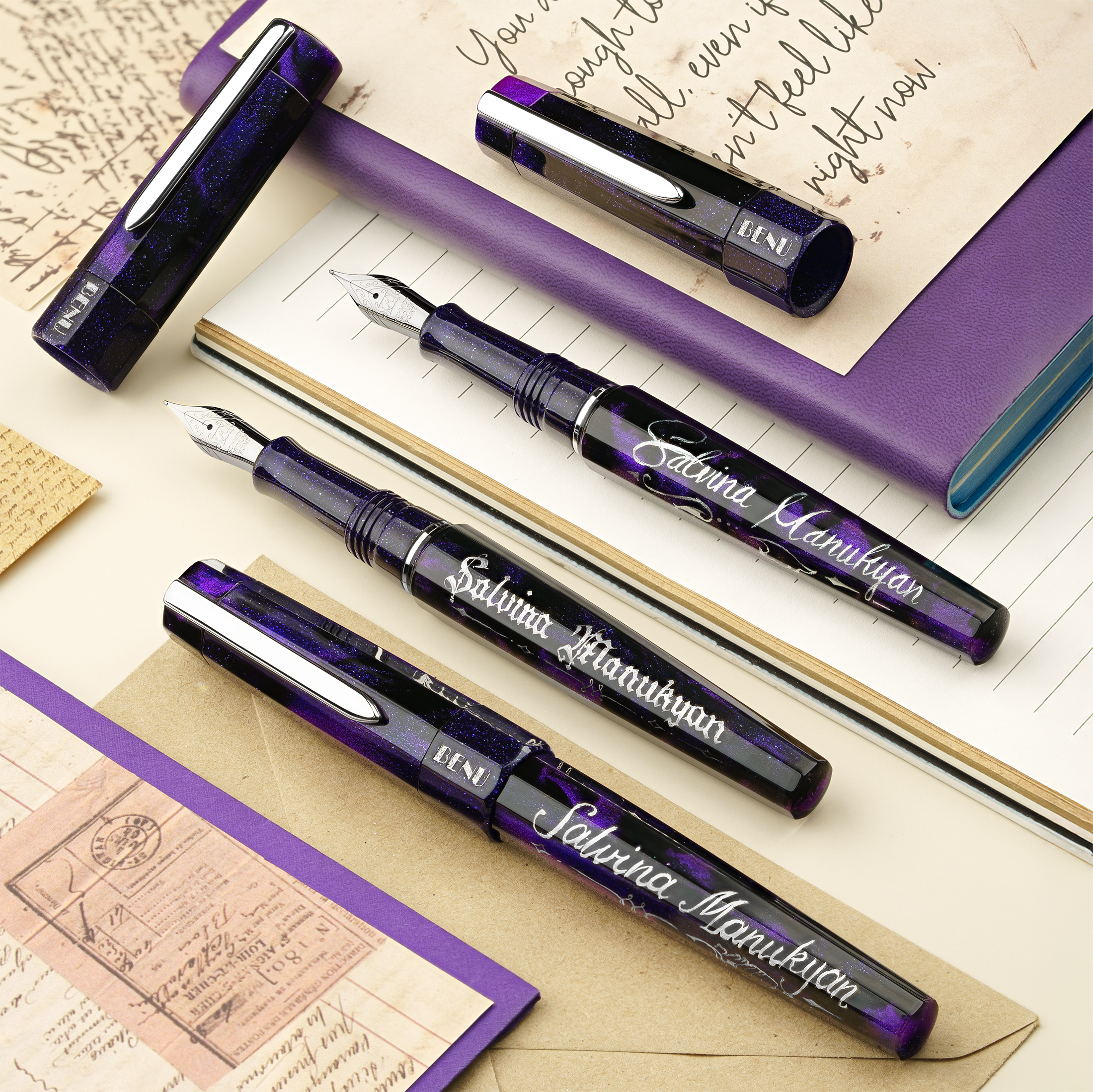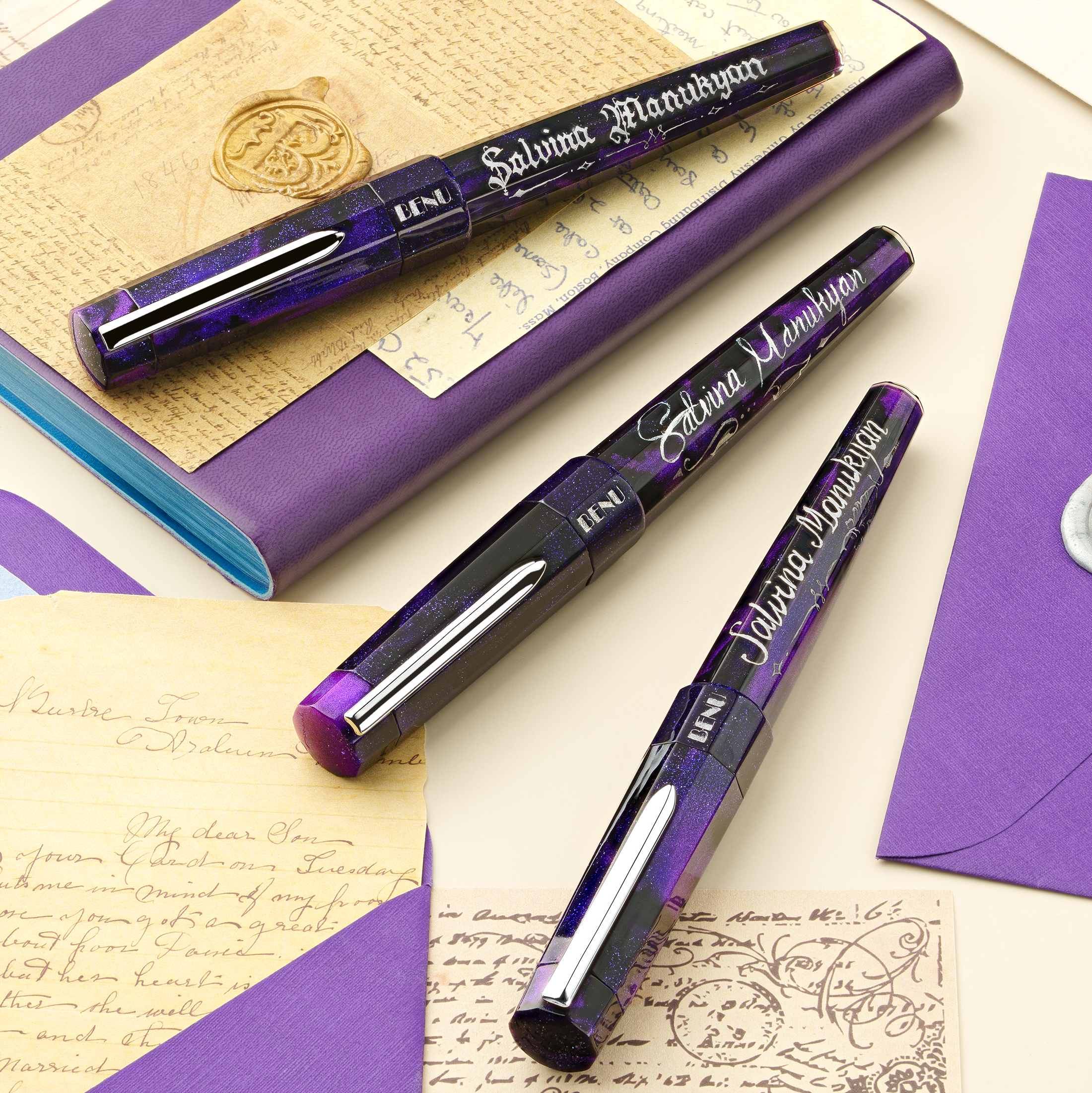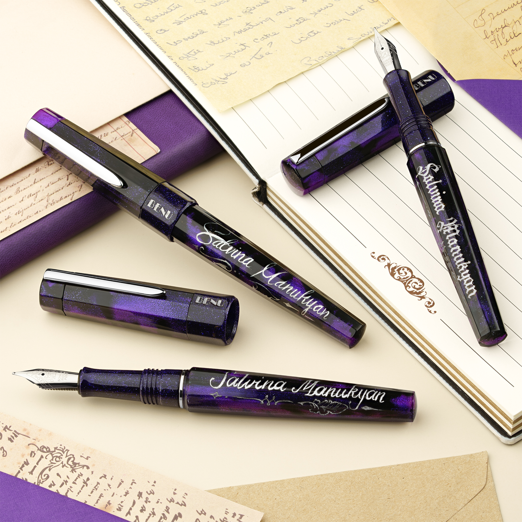 We’re excited to relaunch the Euphoria Autograph series with new personalization options. You can now choose from three elegant font styles and select either silver or gold lettering for your inscription. To add your custom text, simply enter it in the box next to the nib size selection before adding the pen to your cart.