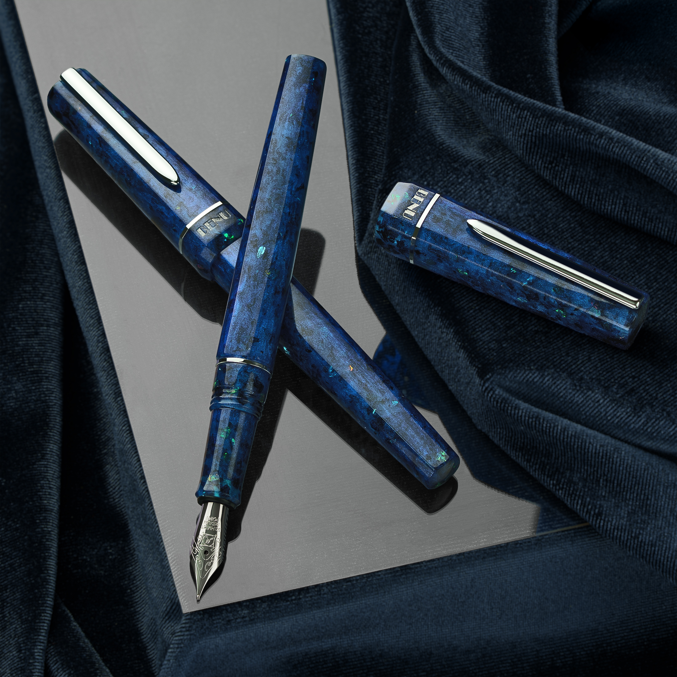 BENU presents the newest Haute Collection — a line of elegant, fashion-inspired pens that blend classic charm with bold, modern flair. The designs include both subtle and vibrant styles, showcasing BENU’s signature glitter and color artistry. Each pen features a faceted body with alternating wide and slender facets, complemented by either gold-plated or chrome-plated trims for a sleek, timeless look.