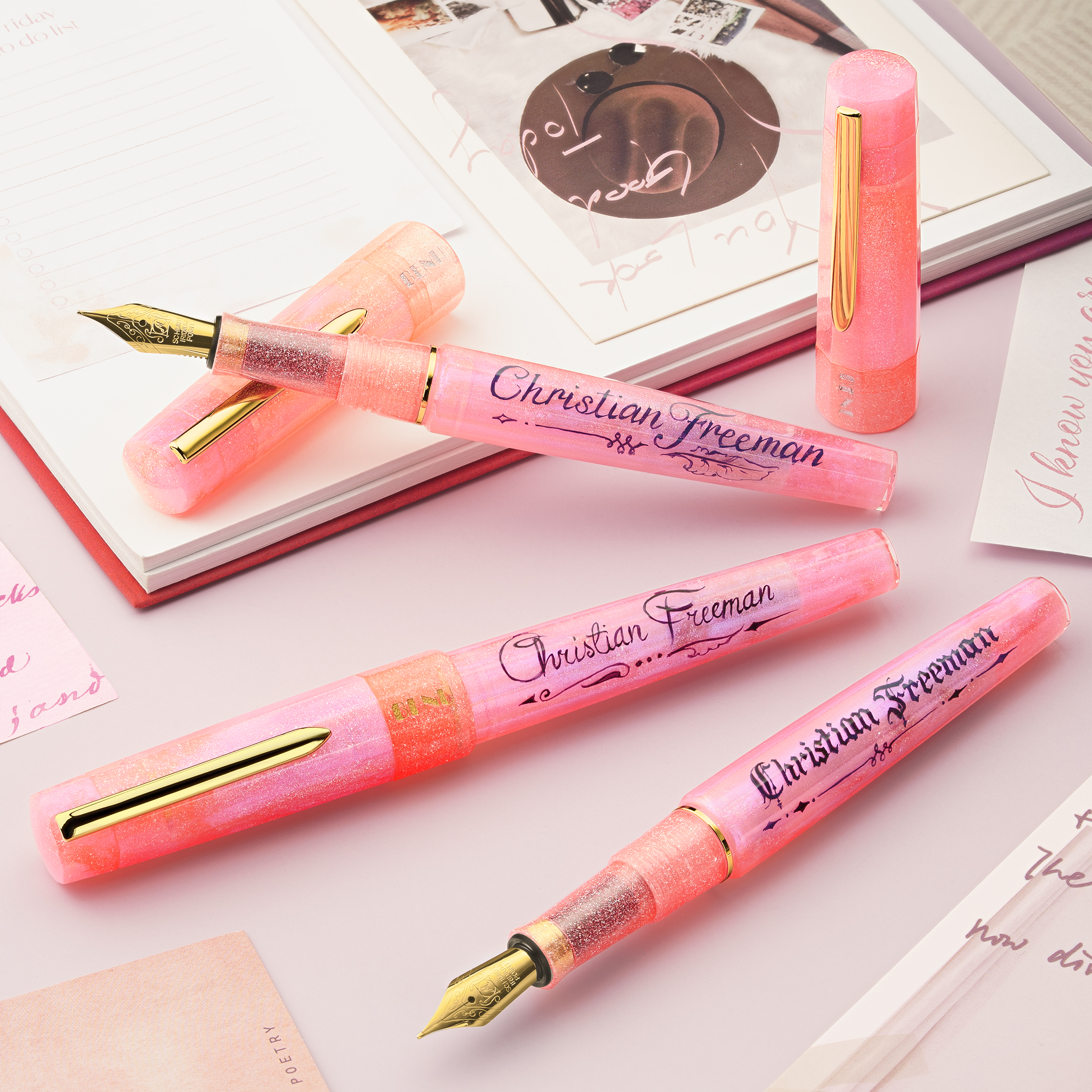 With shining shades of pink and coral, Radiant Autograph embodies the joyful spirit of creativity and self-expression within our Euphoria Autograph series.This line celebrates self-expression, offering you the opportunity to personalize your pen with a custom inscription hand-lettered by one of our talented artists.