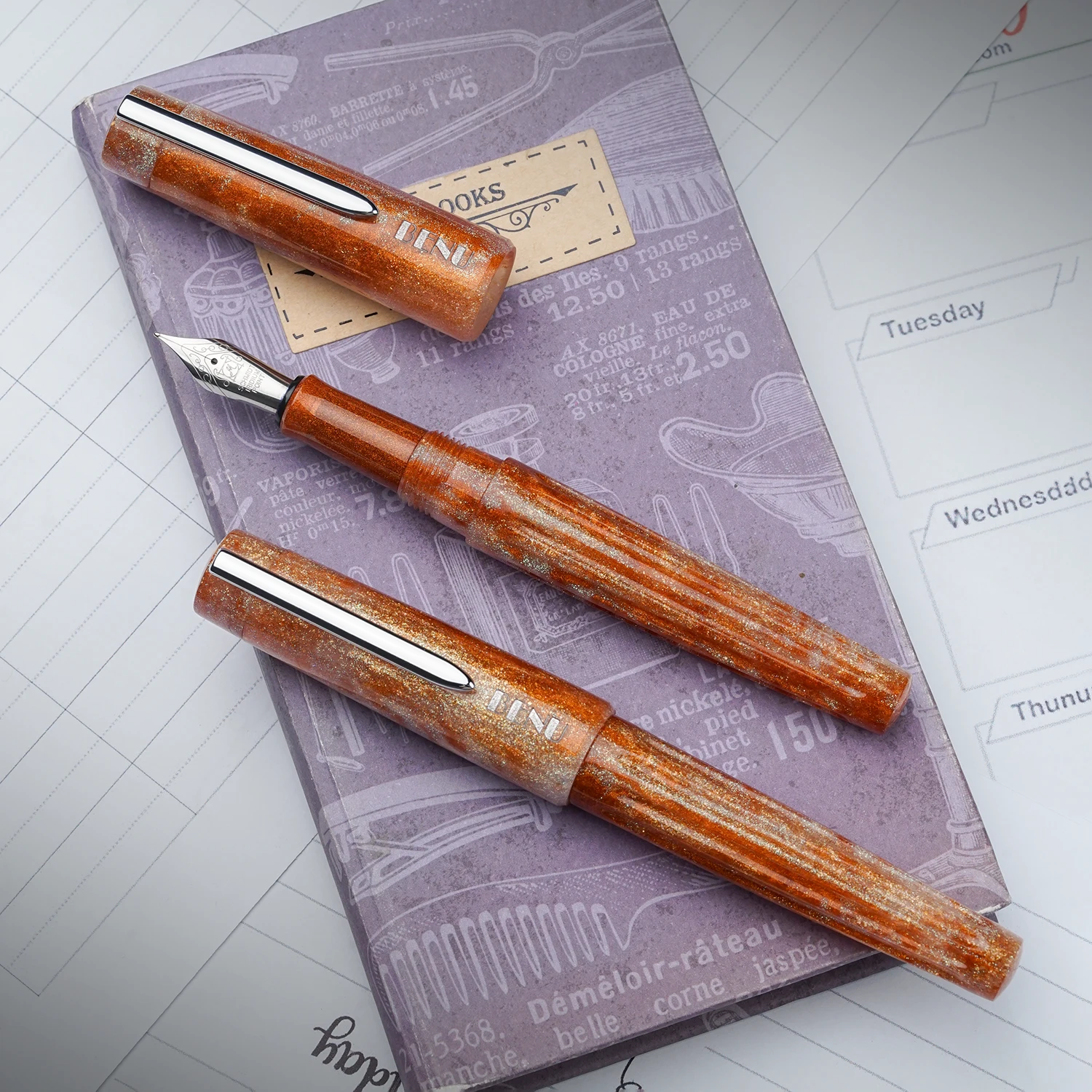 The day of the Sun calls for a golden, sparkling color. Crafted in warm, sunny hues ranging from platinum light to rich amber gold, the Relaxing Sunday pen perfectly captures the radiant and tranquil spirit of Sunday.