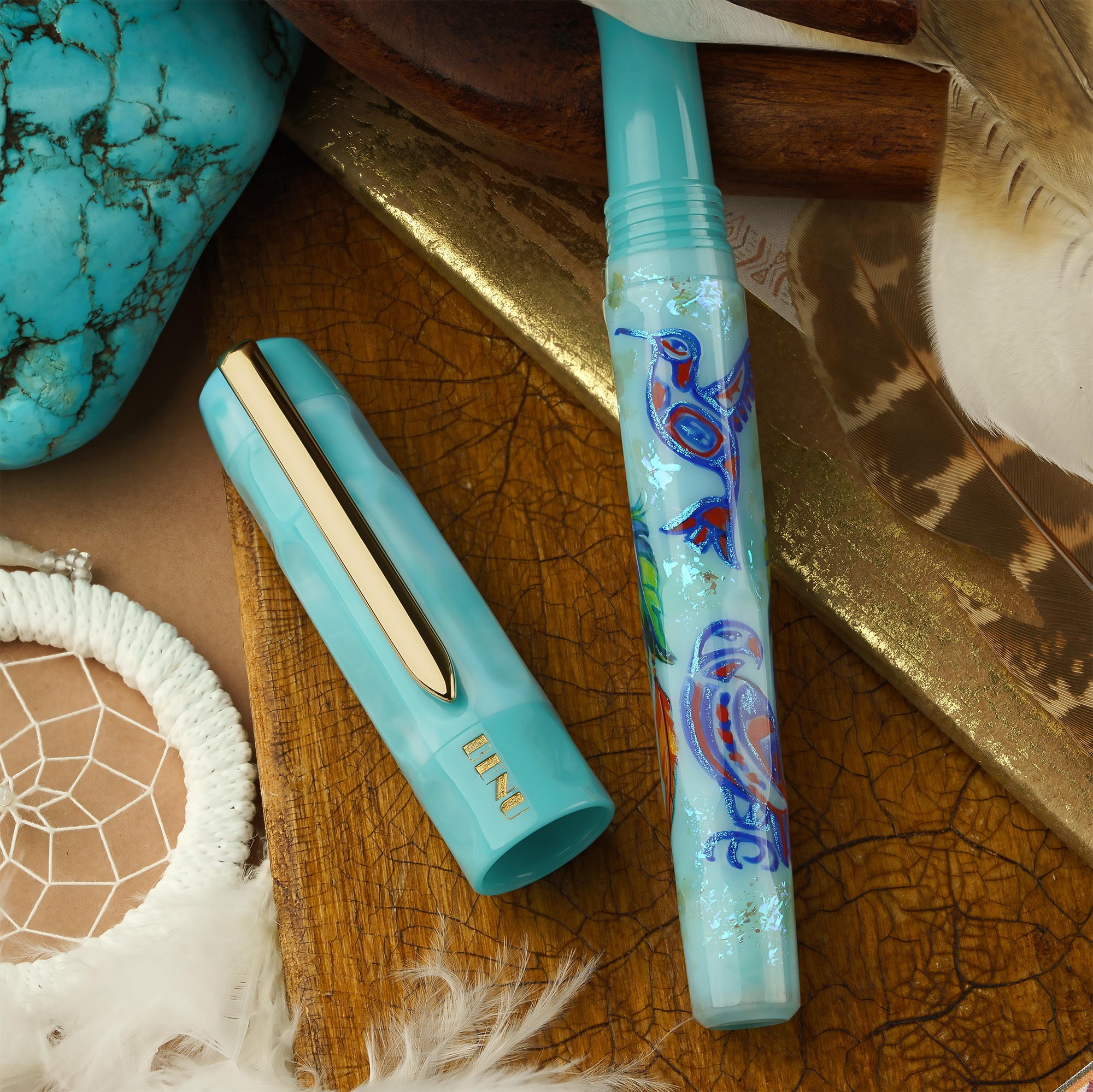 Turquoise — known as the “Stone of Heaven” — has been cherished for millennia across cultures for its vibrant hues and sacred symbolism. Revered by Native American tribes, ancient Egyptians, Persians, Tibetans, and medieval Europeans alike, it has symbolized protection, healing, spiritual connection, and divine favor. From guiding hunters and travelers to adorning sacred tombs and prayer beads, turquoise is more than a gemstone — it embodies ancestral blessings, spiritual harmony, and timeless wisdom. Today, this enduring legacy inspires our latest BENU pen, capturing the beauty, power, and sacred spirit of turquoise in every detail — a true talisman for those who believe in its timeless magic. Available exclusively at BENU’s online store.