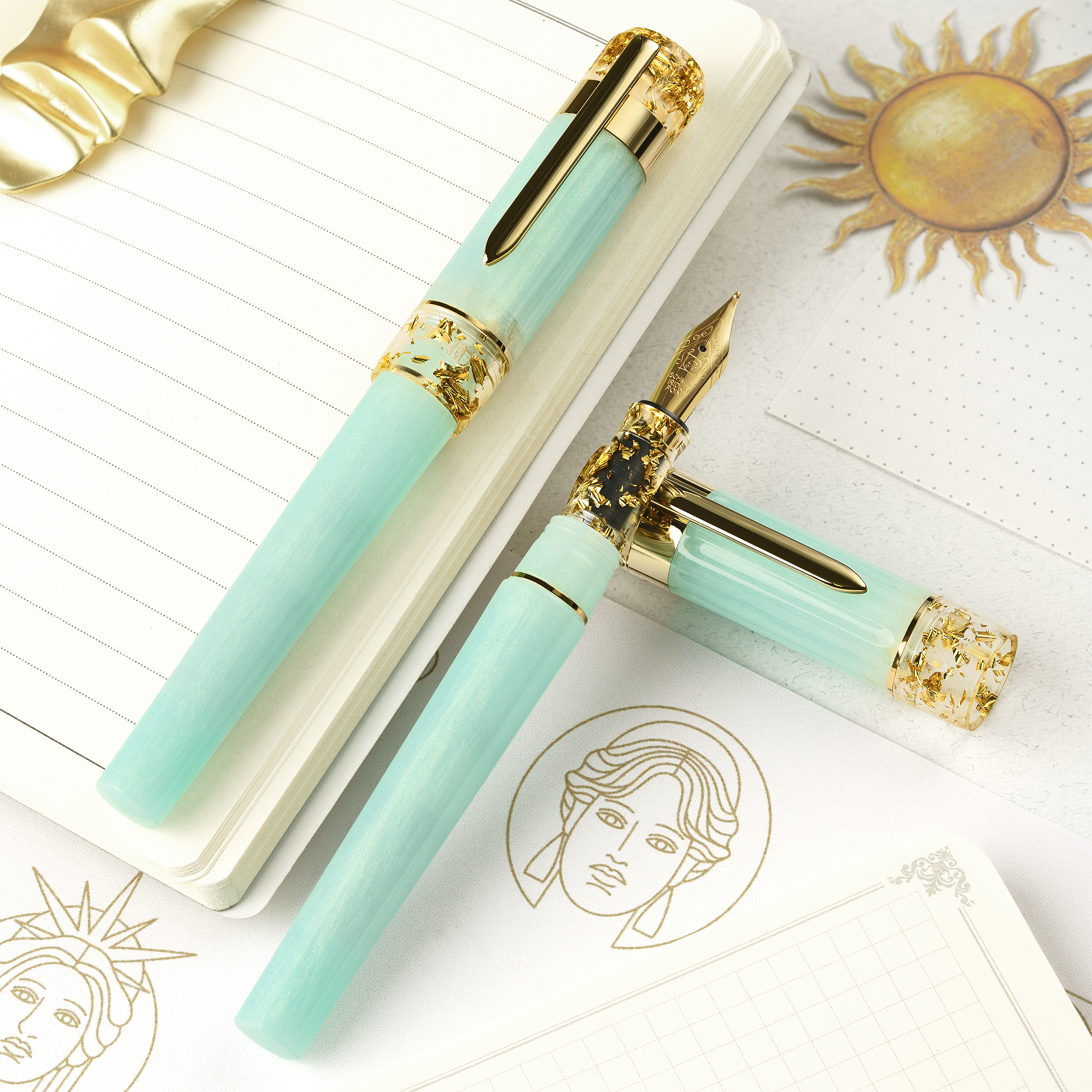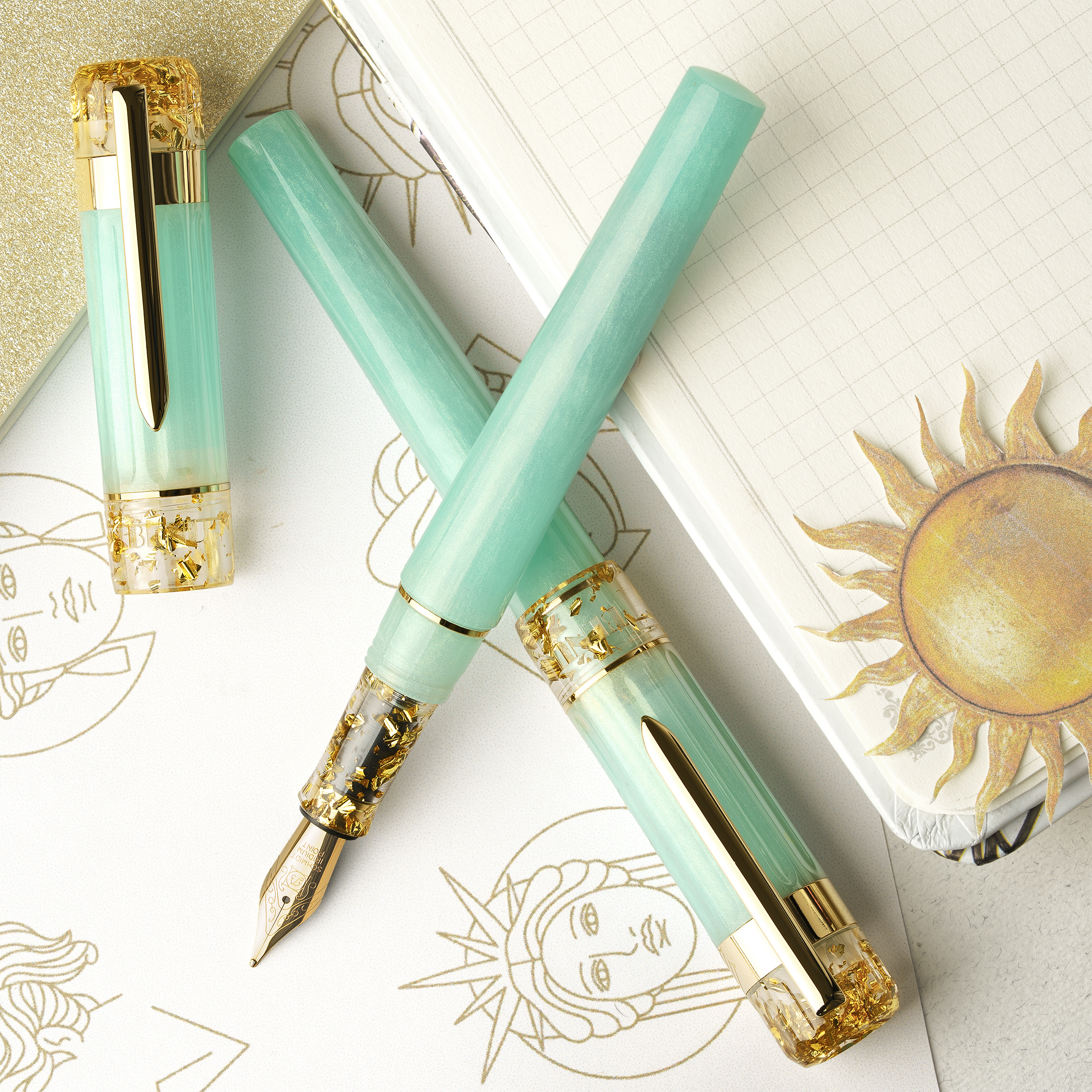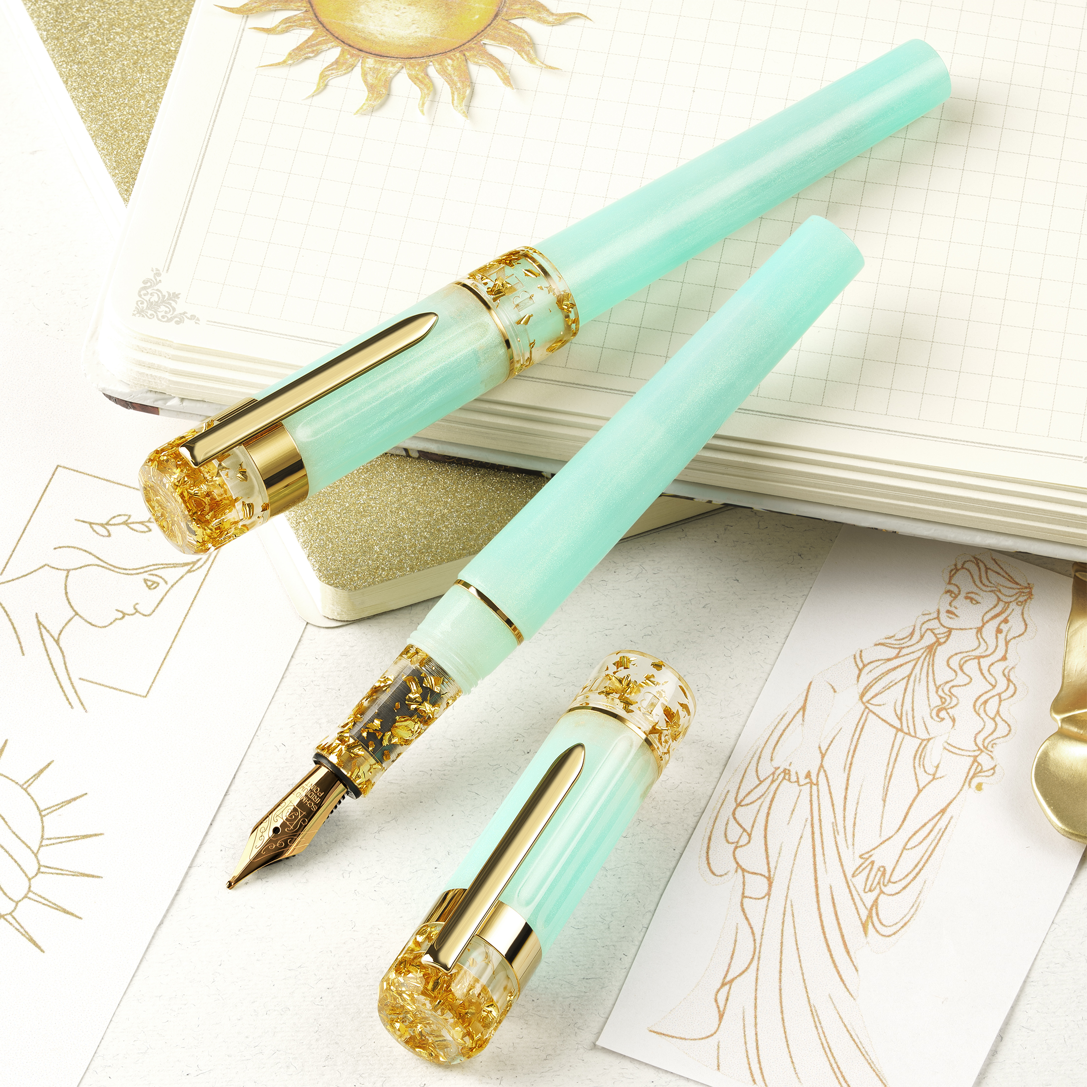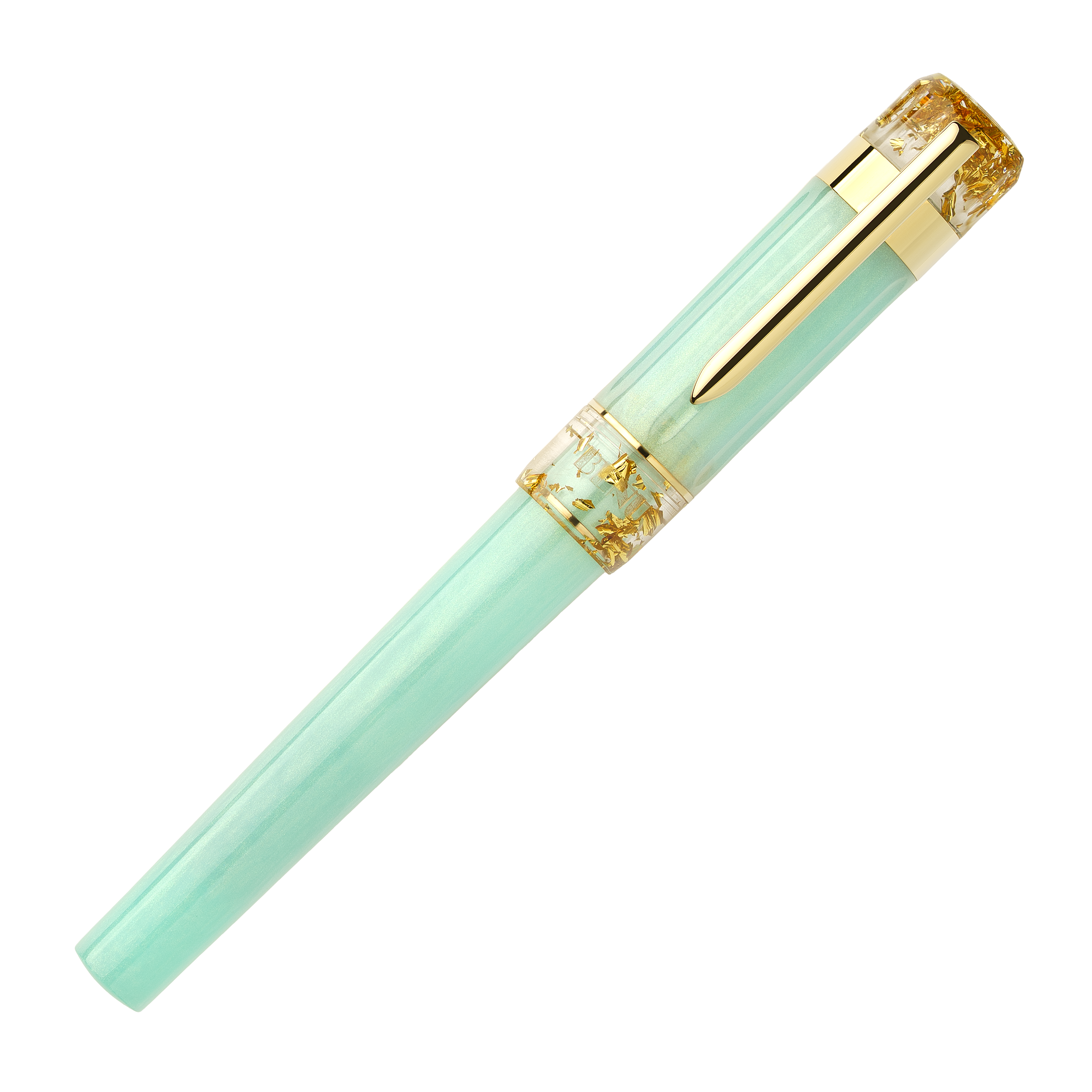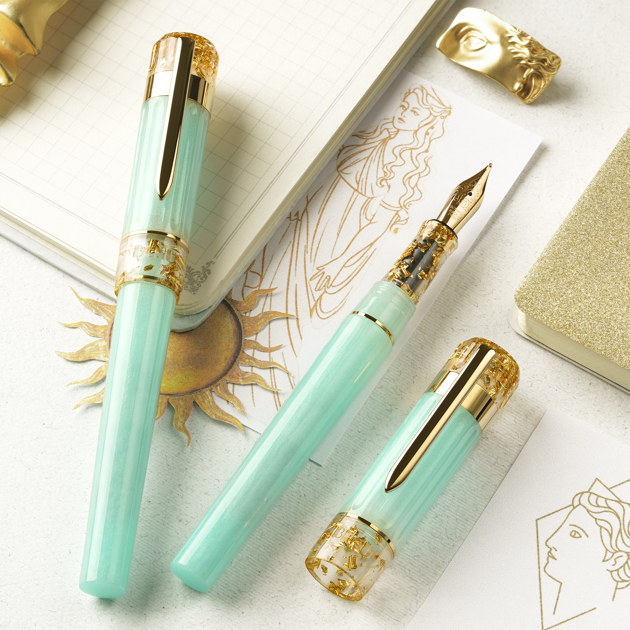 The Venus pen pays homage to the rich culture, imagery, and traditions of ancient Rome, and in particular to the immortal figure of the goddess Venus — timeless muse of love and beauty whose image has inspired artists, poets, and dreamers for centuries. Crafted in soft sea-foam green with delicate golden and transparent sparkles, the pen reflects the gentle light of the sun breaking across the waves. Born from the sea foam, Venus embodies both the power and the tenderness of the waters, rising as a symbol of life’s elegance and joy.